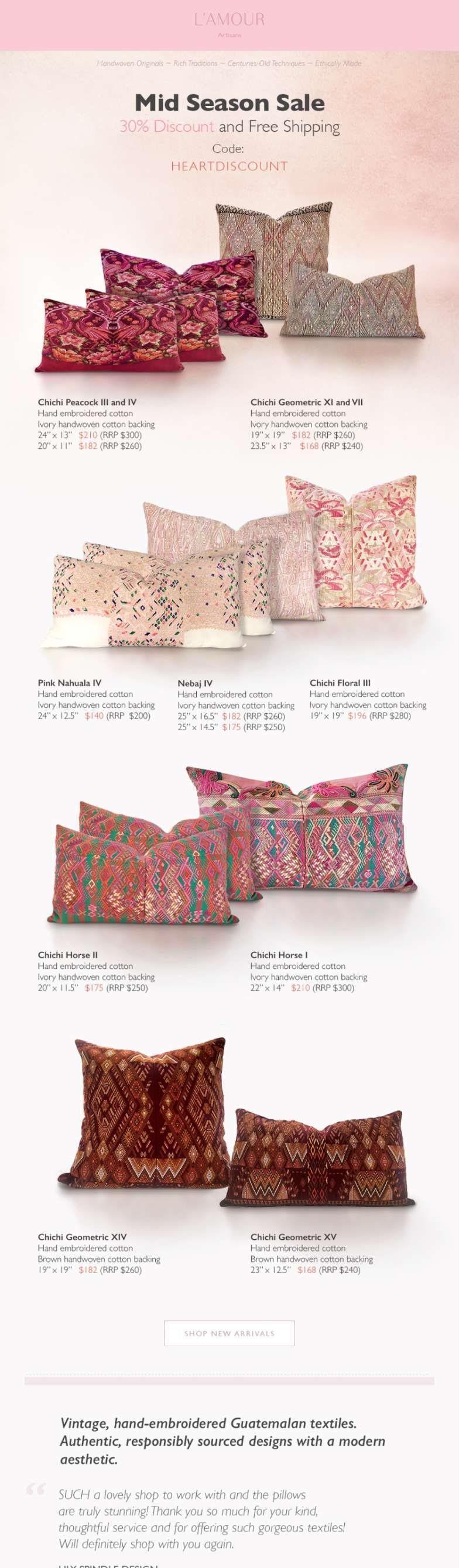 https://www.lamourartisans.comLamour Artisans is dedicated to transforming vintage Guatemalan textiles into unique and beautiful, sustainable home décor. Each piece is woven with stories of tradition and artisanal craftsmanship.